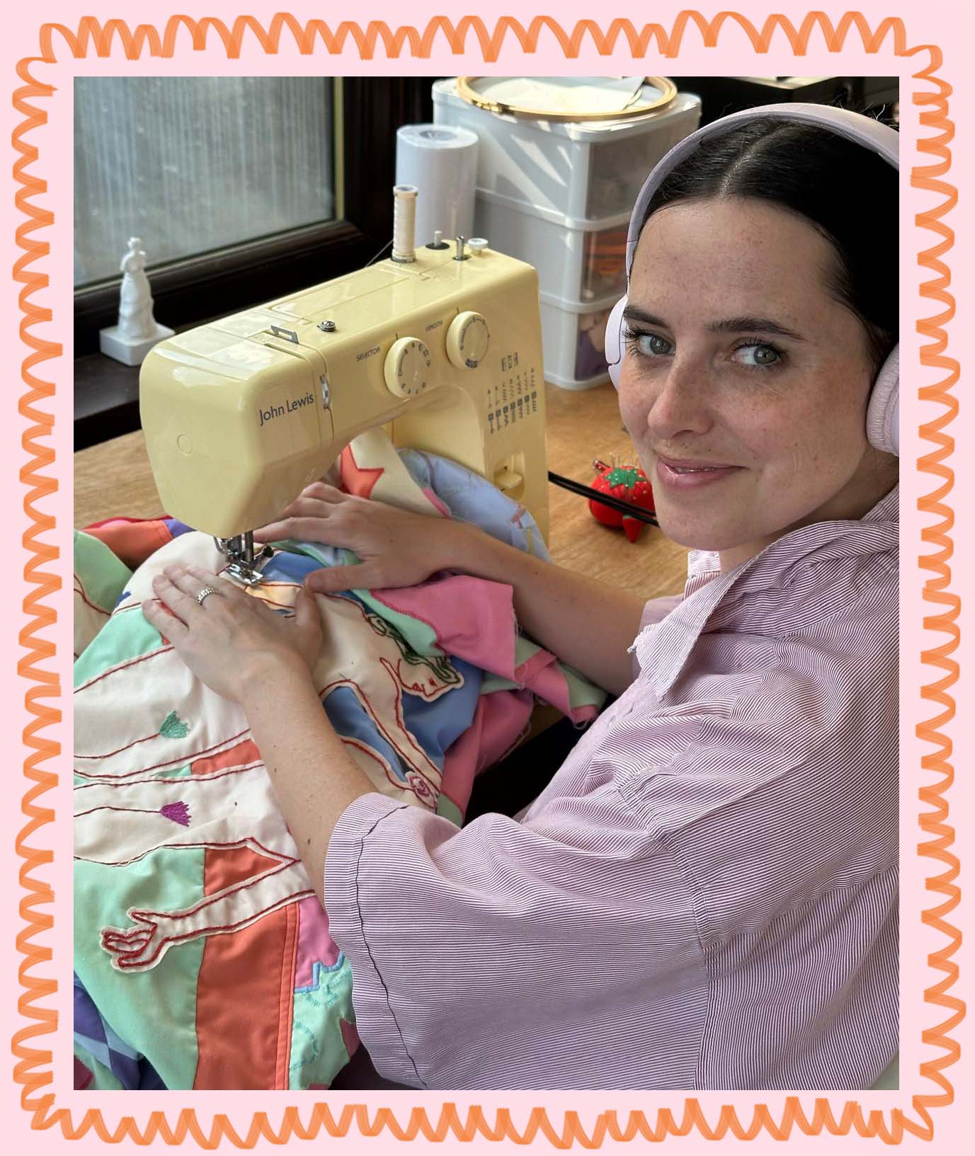 Claudia Klaus blurs the boundaries between painting and quilted textile art through her signature Padded Paintings, handmade quilts mounted on wooden frames. Each merge art history, domestic craft, and whimsical reimagination.