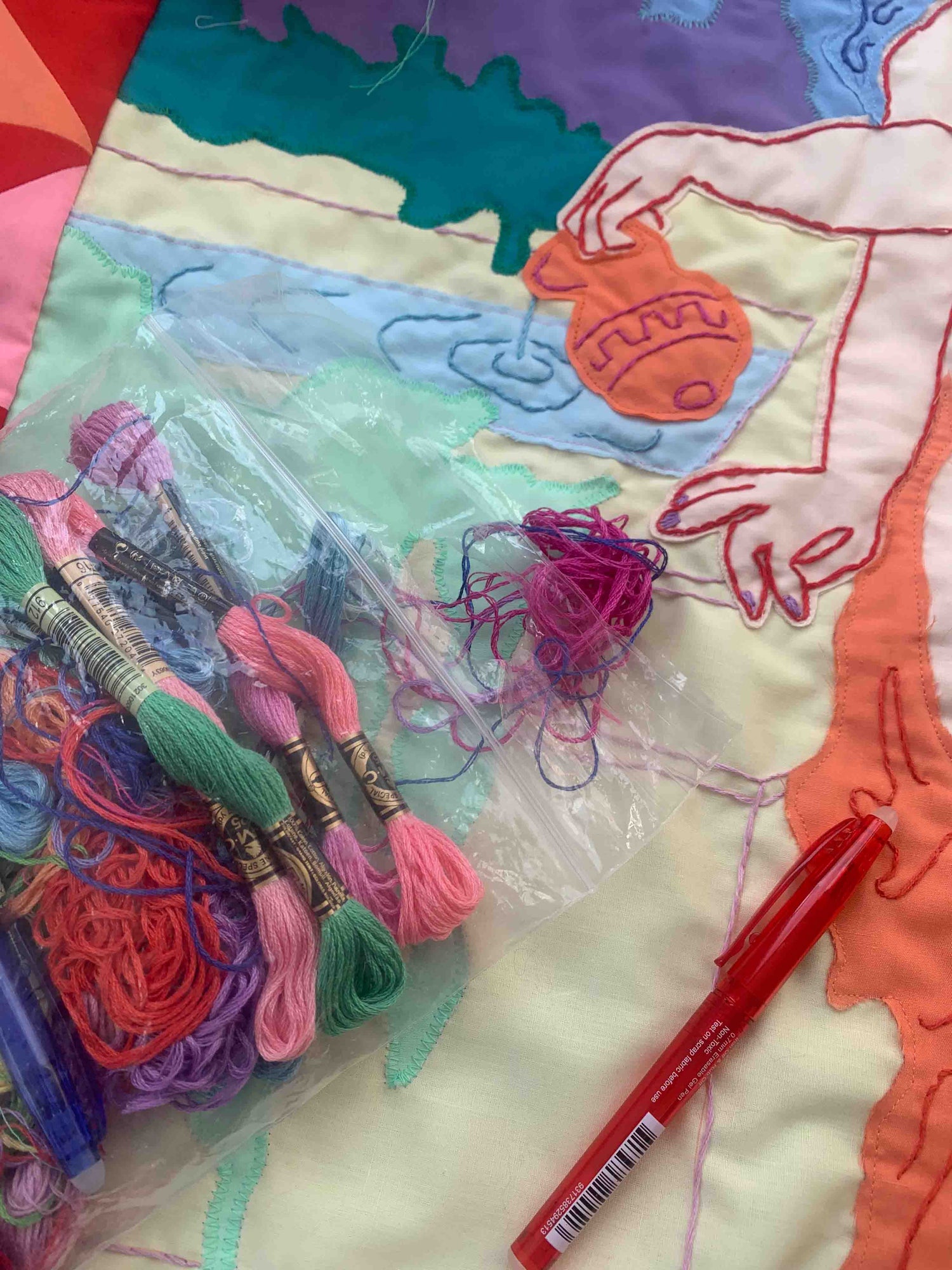 Lately, I’ve become a bit obsessed with my (still kind of new) sewing machine, which has led to my latest series: ‘Padded Paintings’.